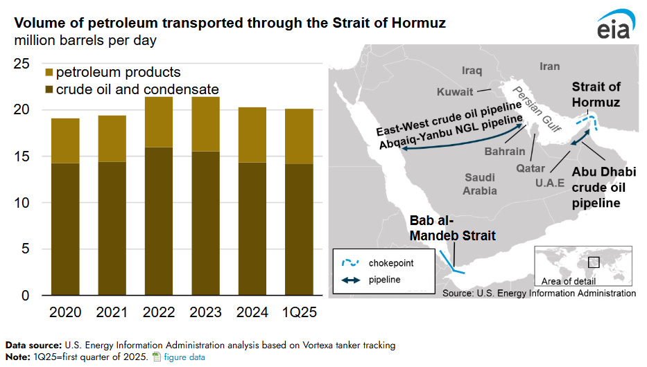 But Iran’s own barrels are not what has the market’s attention. The real disruption is the 14 million bpd of crude that transits the Strait of Hormuz, roughly 20% of global petroleum liquids consumption, where traffic has dropped almost to a standstill.