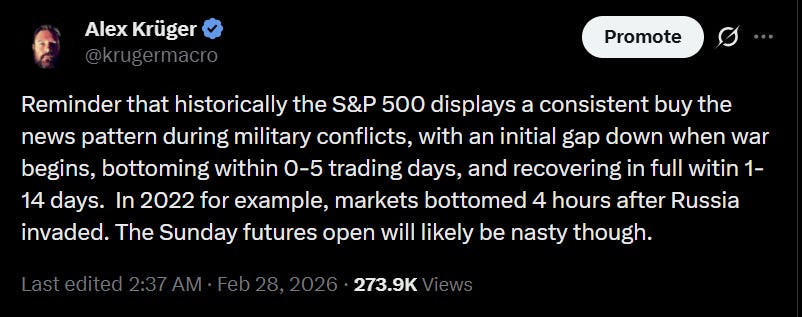 In 2022, risk assets bottomed on the day of the Russian invasion (February 24th). Yet the subsequent bounce was a bull-trap, and by late March markets had resumed crashing. The true driver of that Q2 crash wasn’t the war, but a hawkish Federal Reserve forced to hike into rampant inflation (which the oil spike made worse).